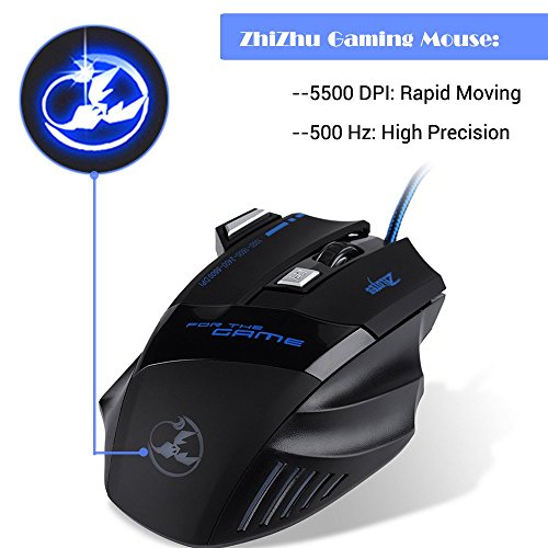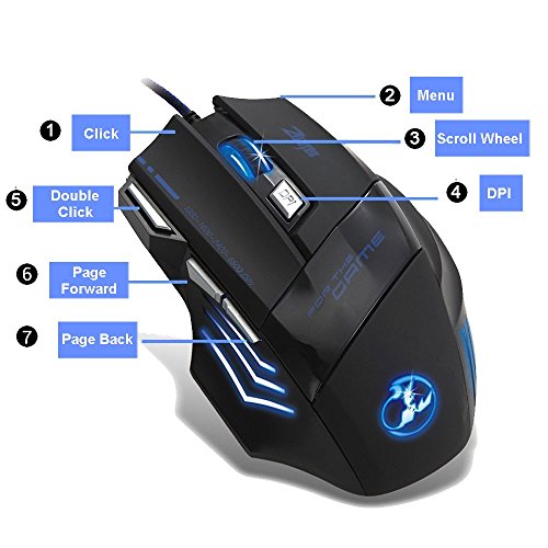 [The Newest Version in 2015] Habor 5500 DPI, 500 Hz, 7 Buttons LED Optical USB Wired Gaming Mouse Mice for Gamer.