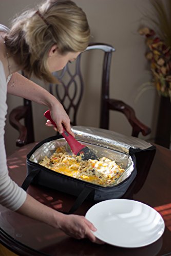 The Large handle provides amazing stability for your lasagna lugger. The food tote also perfect as a cold or hot food carrier. It is also compatible with rachel ray bakeware.