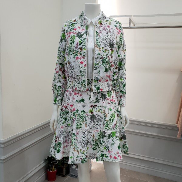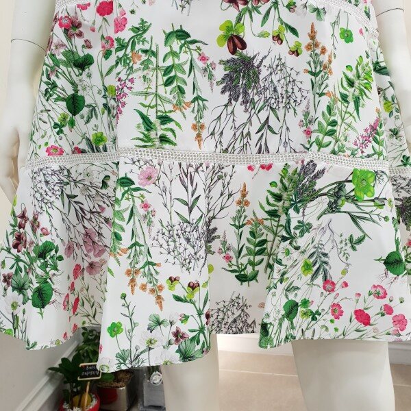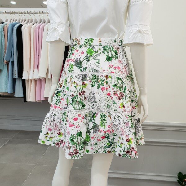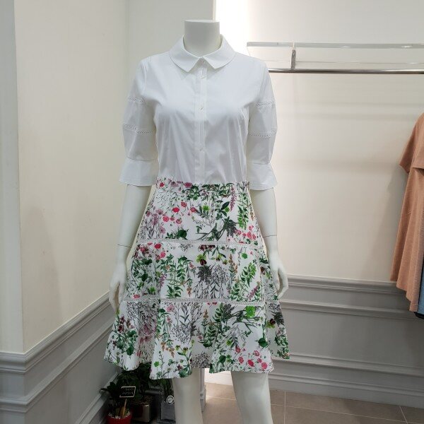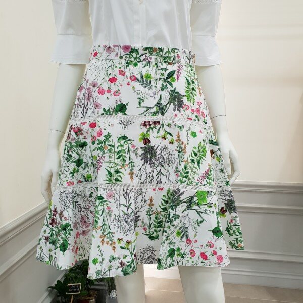 얇은타프타소재 플레어스커트입니다~중간에 레이스컷팅처리로 깜끔한 마무리~단색 상의와 매칭하심 좋습니당~ 총장50cm