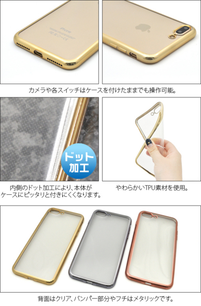 iPhone7 Plus用のメタリックバンパーソフトクリアケース。