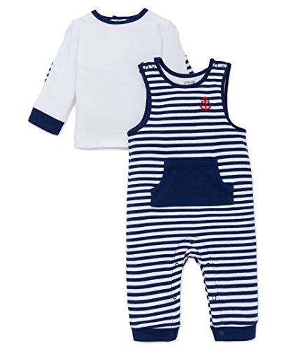 -. Title : Little Me Baby Boys' Knit Anchor Overall Set
