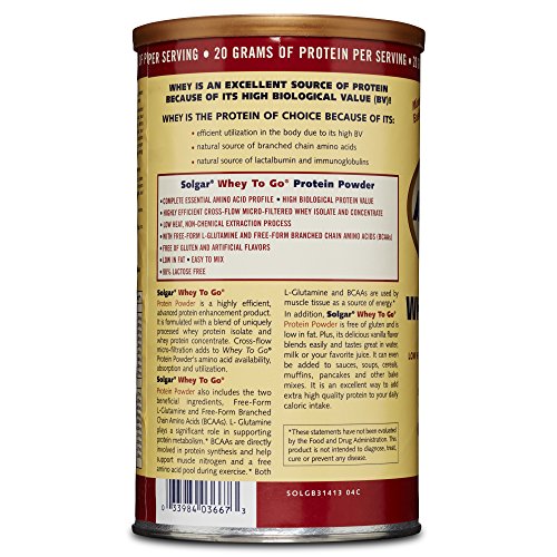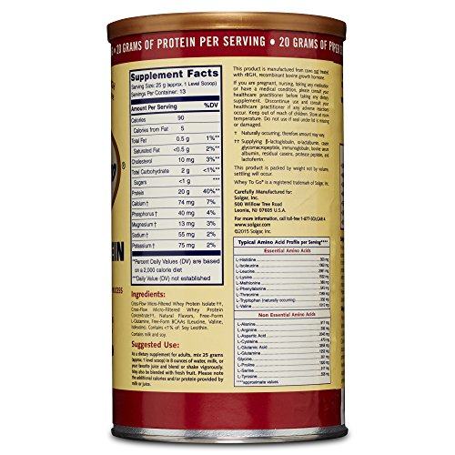 SUPERIOR CREATION: Solgar Whey to Go Protein Powder is a highly efficient, advanced protein enhancement product. It’s formulated with a blend of uniquely processed whey protein isolate and whey protein concentrate. Cross-flow micro filtration adds the amino acid availability, absorption and utilization