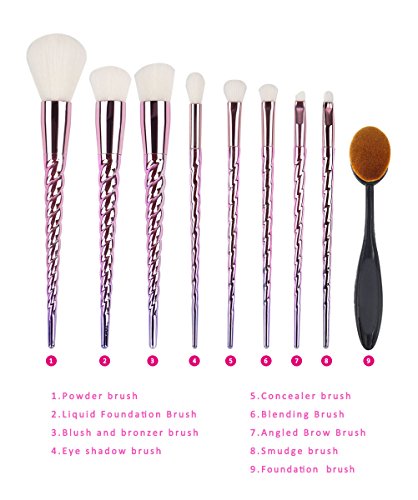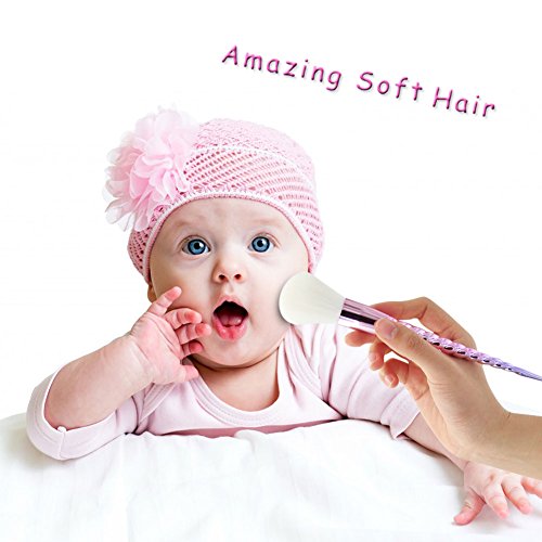 GOOD QUALITY COSMETIC BRUSHES -- Flawless and fluffy vegan brush hair,no allergic,cruelty free,anti-bacteria,easier to clean and doesn't absorb any pigment. Exquisite 8.27'' long unicorn horn handle offer you a great touch.