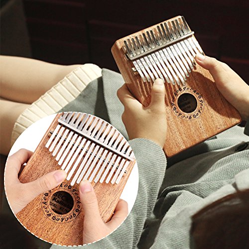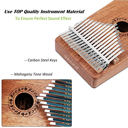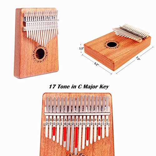 Take Your Melody and Music Style Anywhere. Top Quality Musical Instrument Wood and Beautiful Sound Effect -- Bright, Perfect Echo and Delay, which won't disappoint you. Mahogany Wood: Mahogany resists wood rot and often used for premium musical instruments, particularly the backs, sides and necks of acoustic guitars, electric guitar bodies,and drum shells because of its ability to produce a very deep, warm and bright tone. Unlike other cheap thumb pianos, K17M Kalimba uses top quality solid mahogany wood to make resonance box and carbon steel to make keys which ensure you perfect sound effect.