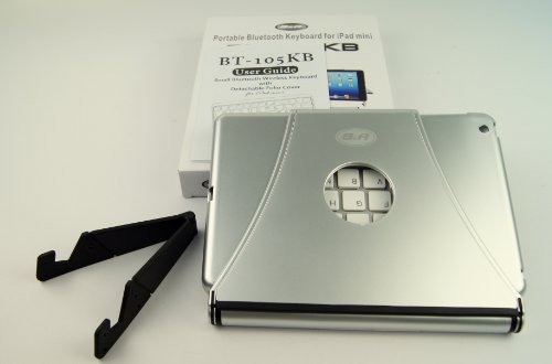 B&A BT-105KB for iPad Mini Bluetooth Wireless Keyboard with Detachable iPad Mini Folio Cover. (Free Extra Foldable Travel Stand / Keyboard Works With Bluetooth Enabled Android Tablet Computers, Android Smart Phones, Windows Tablet Computer, and Windo