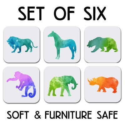 Zoo Colorful Splash Animals - Set of Six - Fun Gift Animal Coaster Set for Drinks - Absorbent | Furniture Safe - Set of six (6 pcs) - Gifts Home Office - Quality Animal Coasters