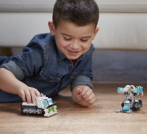 Will Windchill the Yeti-Bot stop Boulder the Construction-Bot from saving the day? Imagine snowy adventures with Arctic Rescue Boulder! Sized right for little hands, this set features Boulder the Construction-Bot, Graham Burns, and 2-piece Windchill the Yeti-Bot figures. Kids can create multiple combinations! Boulder the Construction-Bot converts from bot mode to snow plow mode and back. Attach the drill to Boulder the Construction-Bot in snow plow mode, and press a button to make the drill spin. Young heroes can create a Windchill the Yeti-Bot figure, attach the removable Windchill the Yeti-Bot arms to the Graham Burns figure, and more! Robots and humans saving the day, working together the Rescue Bots way! Manufactured under license from TOMY Company, Ltd. Transformers Rescue Bots is a trademark and copyright of Hasbro.