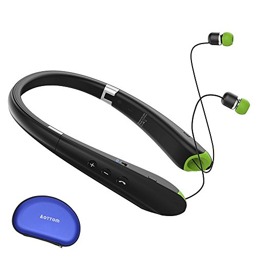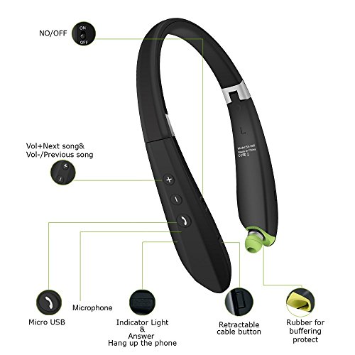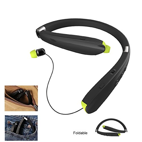 [Upgraded]2017 Bluetooth Foldable Headphones Neckband Wireless Earphones Sport Running Bass Sweatproof Earbuds for iPhone Samsung HTC LG Smartphones Tablets PC
