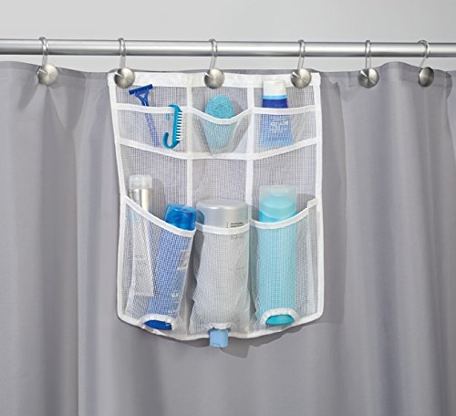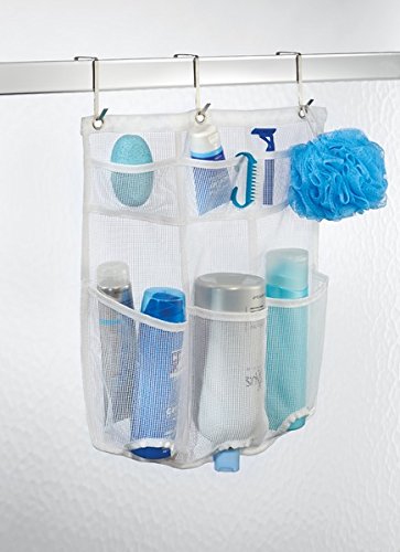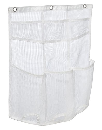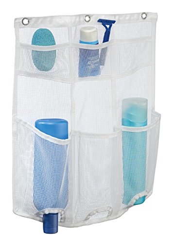Six durable mesh pockets let you see what you've stored; Rustproof grommets; Hang using your existing shower curtain rings. Or hang over your shower door using hooks.