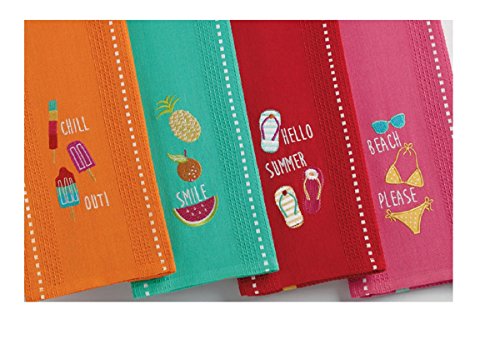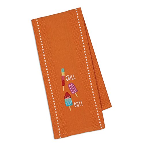 DII Design Imports Orange Kitchen Towel Embroidered Summer Popsicles Chill Out! . Hanging Loop Measures 18 X 28". 100% Cotton. Machine Wash