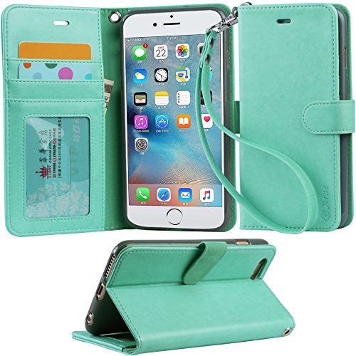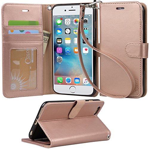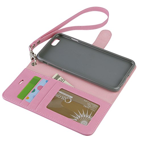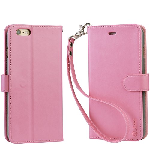 Iphone 6s Plus Case, iphone 6 plus case, Arae [Wrist Strap] Flip Folio [Kickstand Feature] PU leather wallet case with ID&Credit Card Pockets For Apple Iphone 6 / 6S Plus 5.5 (Babypink)
