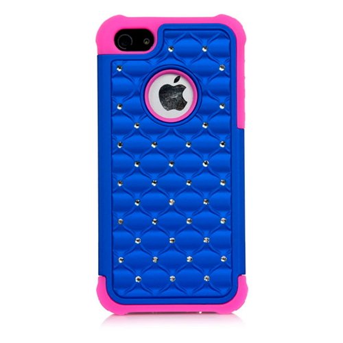 iPhone SE, iPhone 5S Case, iPhone 5 Case,iSee Case (TM) Luxurious Hybrid Dual Layer Lattice Total Defense Bling Rhinestone Diamond Full Cover Case for Apple iPhone SE iPhone 5 iPhone 5S (5-Star Blue on Pink)