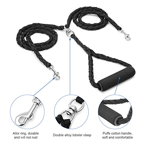 Studio : FOCUSPET Publisher : FOCUSPET Binding : Misc. Product Description Feature: 1.Double coupler, can walk two dags together with safe control over both 2.Make walking two dogs more convenient and easy 3.Puffs cotton handle, soft and comfortable, will not hurt your hands 4.Alloy coupler, more durable Specification: Color: Black Material: NylonAlloy Length: Approx 135cm Diameter: 1.1cm Package included: 1 x Double Dog Leash 0