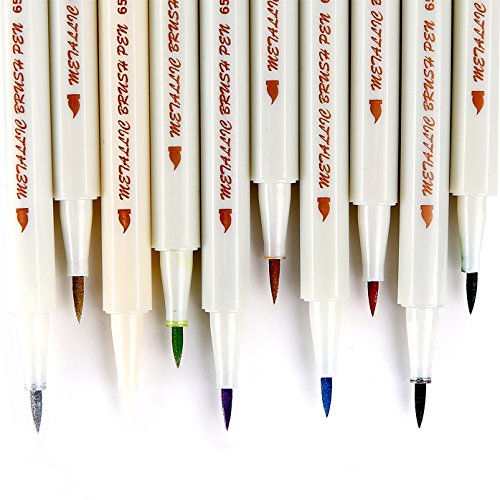 Ohuhu Metallic Markers Glitter Paint Pen Calligraphy Brush Pens, Set of 10 For DIY Birthday Greeting Gift Thank You Card, Scrapbook Photo Album, Rock Art Painting, Brush Tip