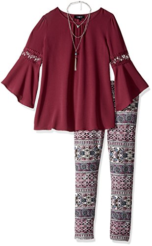Amy Byer Big Girls' Long Bell Sleeve Blouse with Print Legging, Color Plum, S