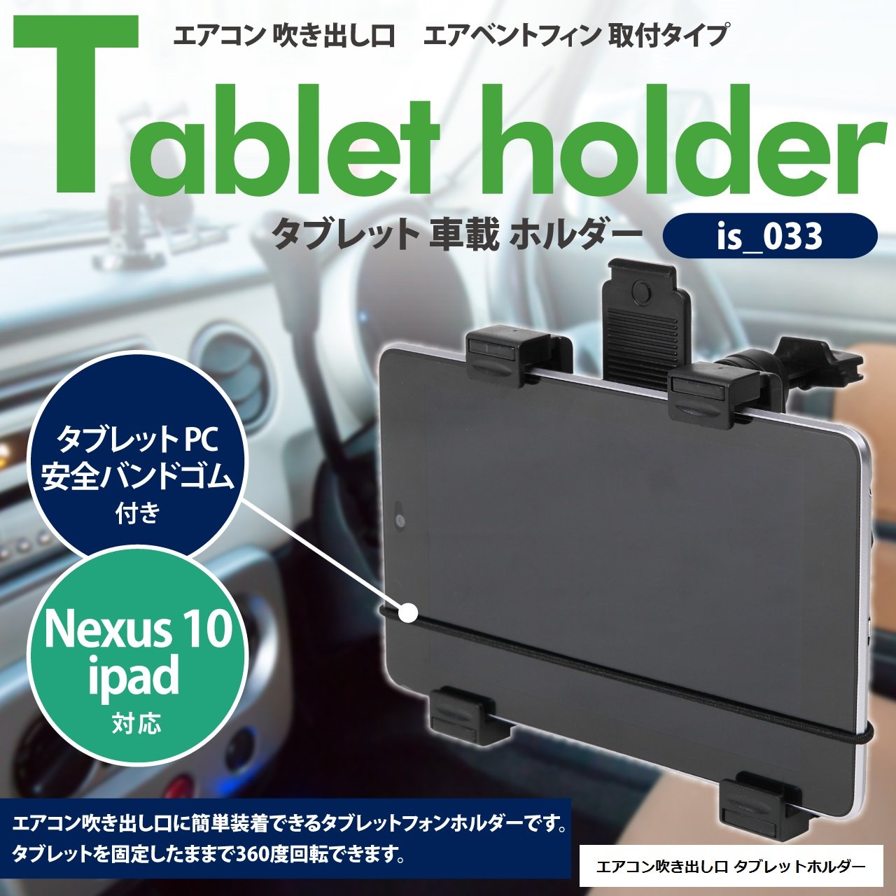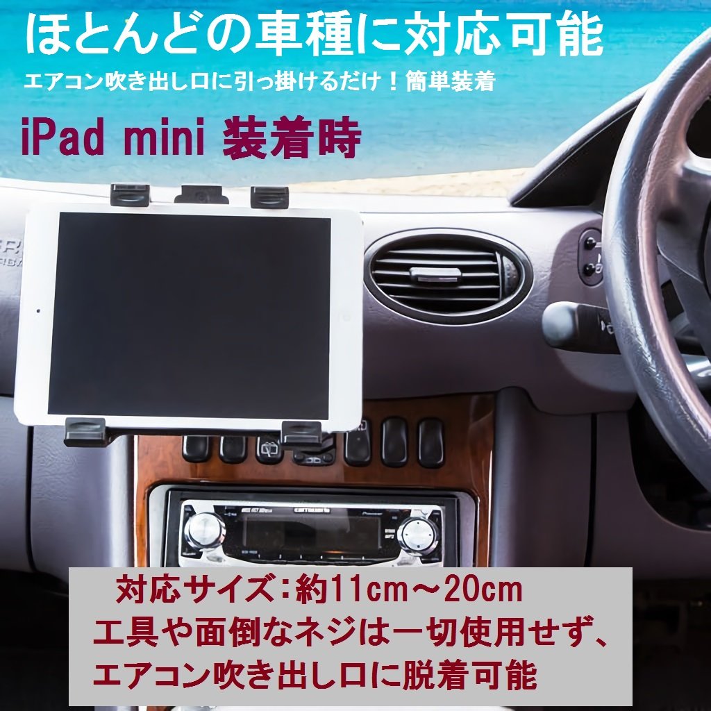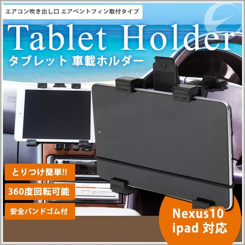 It is a tablet holder which can be easily attached to air vent fins (air conditioner outlet).