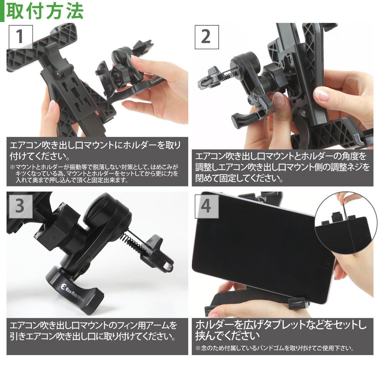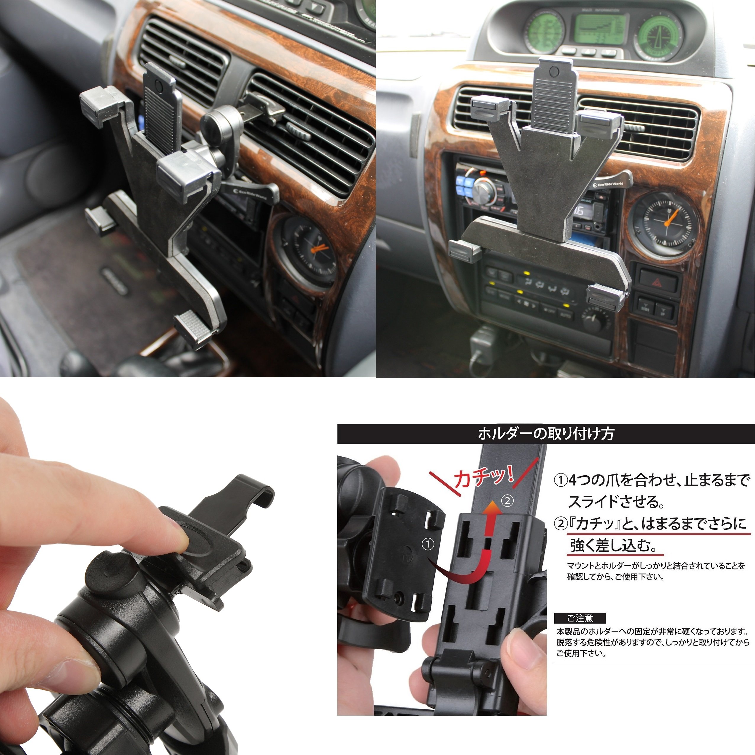 As the measures to prevent the mounts and holders from falling off due to vibration or the like are becoming hard to fit, you can set the mounts and holders and put more force and push it in to fix it.
