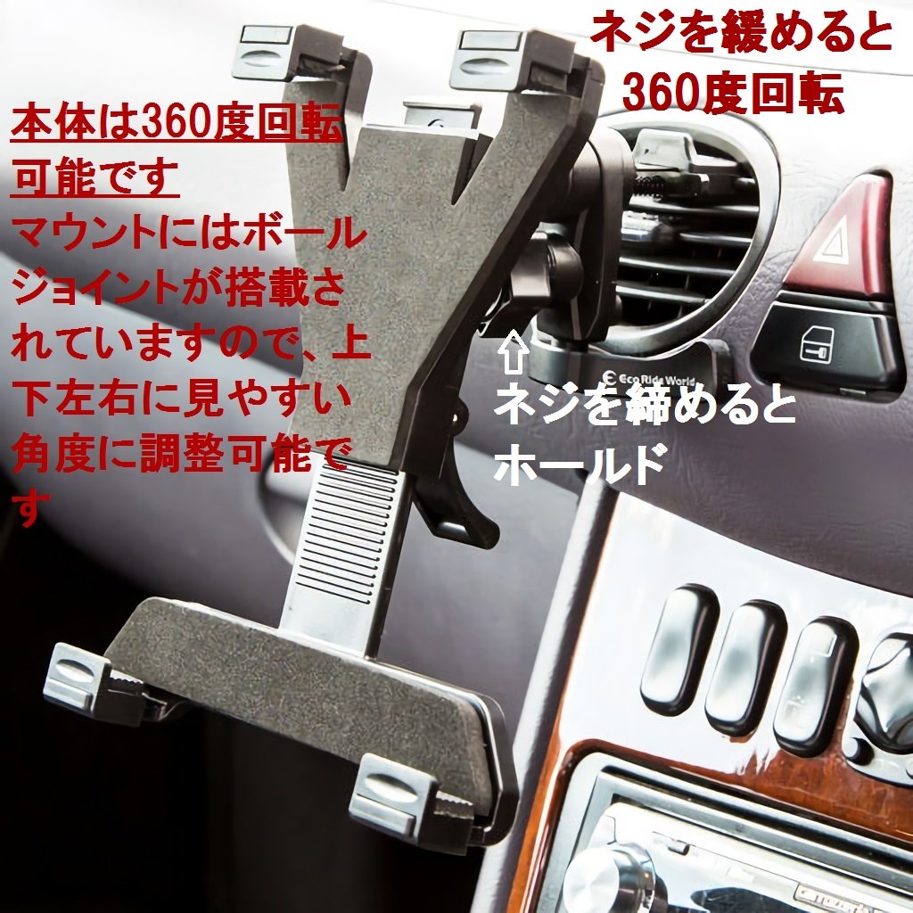 You can enjoy tablet function comfortably in the car by installing the tablet car holder.