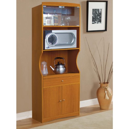- Feature : Simple and chic tall microwave cart with a cherry finish / Attractive and functional with an upper cabinet and glass doors and a lower enclosed cabinet / Easy to assemble and appreciate