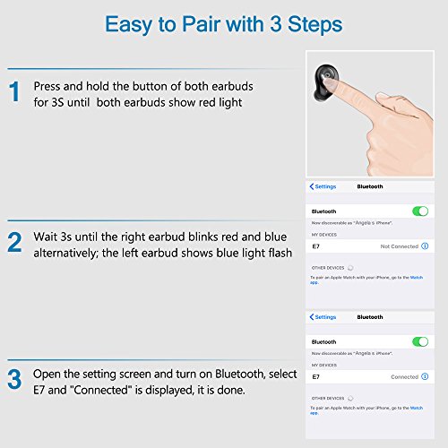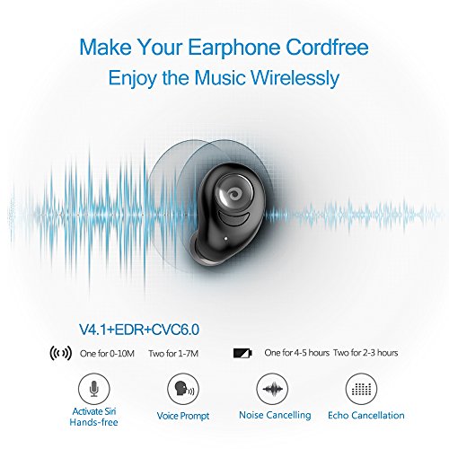 -. Feature : Truly Wireless Bluetooth Earbuds: The latest technology makes truly wireless Earbuds possible, which completely sets you free from cable mess. No more noise when you move, no more cords stuck on you neck even when you sweat. / Longer Battery life with Charging Dock: The portable designed charging dock built with large capacity battery, which can support 3 times fully charging for the wireless earbuds. You can enjoy up to 3 hours continuous music time after fully charged. / Unparalleled Sound Quality with V4.1+CVC 6.0: with the Latest Bluetooth V4.1 technology, you can enjoy fast speed and stable connectivity with strong signal and low power consumption. The noise cancellation technology filters ambient noise and echo, providing clear sound no matter in calls or when listening to music. / Smart Stereo Mode/Mono Mode: The earbuds can be used separately at your will, enable you to share the same music/movie TV with your friends(within reasonable distance). Alternatively pair the Beartwo Wireless Earbuds for a clear stereo experience. / Humanistic Ergonomic Design for Better Experience: For secure and comfort wear, the shape of the earbuds is carefully designed according to ear geometry, suitable for most people. Soft material to protect ears, Lightweight/in-Ear Design/Sweatproof perfect for sports, watching TV or sleeping.
