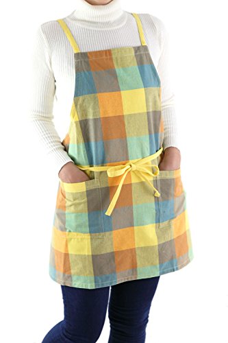-. Title : エプロン チェック クロス紐 A/バーデンイエロー タオル掛け付 保育士 かぶり ワーク 大きい 綿 シンプル スモック 割烹着 かわいい おしゃれ 女性用 男性用 男女兼用