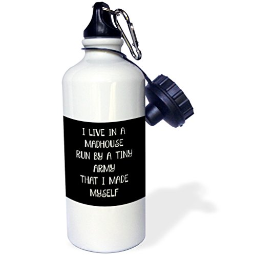 -. Title : 3dRose Xander funny quotes - I live in a madhouse run by a tiny army that I made myself - 21 oz Sports Water Bottle (wb_245023_1)