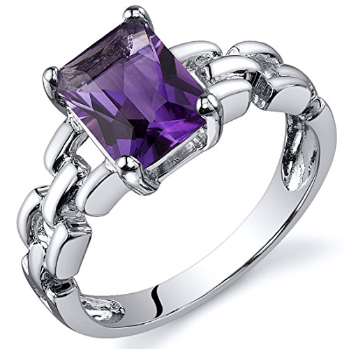 -. Title : Amethyst Ring Sterling Silver Rhodium Nickel Finish 1.25 Carats Chainlink Style Sizes 5 to 9