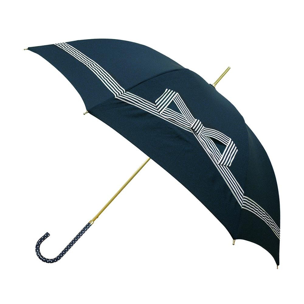 テープリボンを施した、ジャンプタイプの長傘。