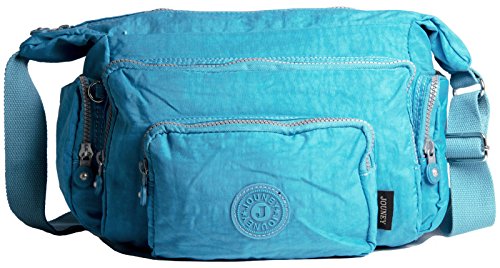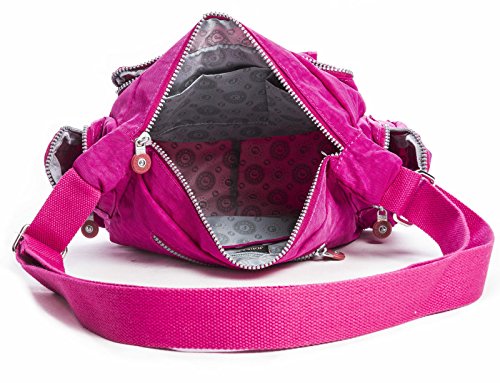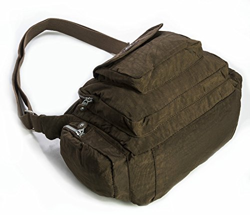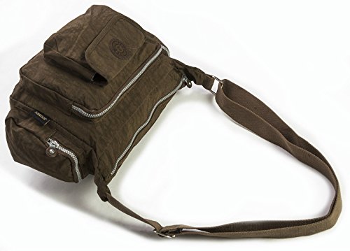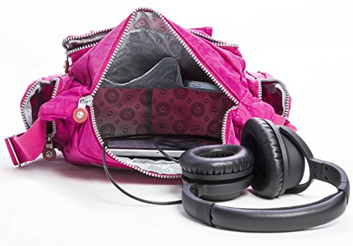 Big Handbag Shop Multi Zip Pockets Lightweight Fabric Shoulder Messenger Cross Body Bag