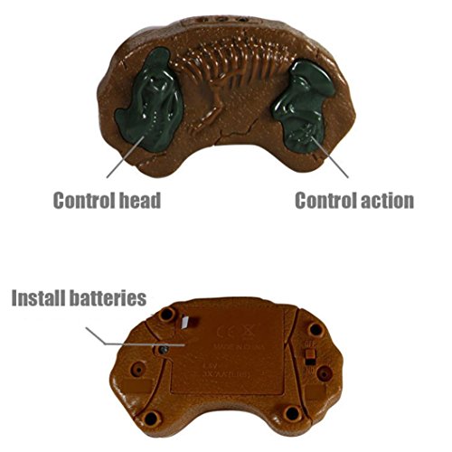 -. Feature : On/Off function is easy to control. Kids can play easily & feel real skin on the neck / Realistic motion drive, can walk forward and roar, spin left and right, educational toy / Both the mighty dinosaur and included controller are constructed of non-toxic ABS plastic / Watch the prehistoric Tyrannosaurus Rex roam again with the infra-red controller that features 2 buttons for head and leg motions / Prehistoric Tyrannosaurus rex towers over its prey with light-up eyes at a mighty 21 inches long and walks, roars, shakes all on its own
