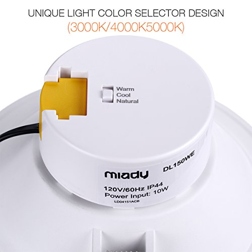 Miady LED recessed downlight is an industry-leading design lighting that combines traditional LED recessed housing and retrofit fixture all in one slim body fixture. With the J-box and AC power plug, simply install the downlight in different types of ceiling without having to undergo messy and complicated routing and housing reconstruction. Unique switchable color temperatures and dimmable design allows setting the desired light atmosphere easily.