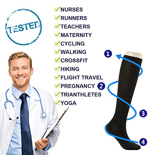 - GIFT CHOICE: Our compression socks are recommended by doctors and preferred by trainers. They can Increase and stimulates blood flow, working as a circulation booster. Use them as daily necessasities to relieve pain/swelling legs. Idea gift choice for nurses/ teachers, nursing, medical, travel, flight, running&fitness, pregnancy,stamina, Varicose Veins Edema, Diabetic.