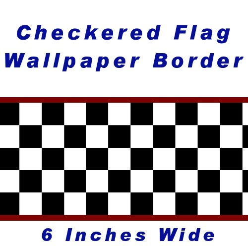 Checkered Flag Cars Nascar Wallpaper Border-6 Inch (Red Edge)