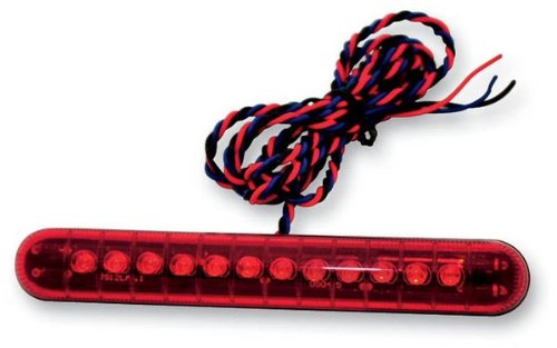 This light bar contains 12 high power dual intensity LEDs. In running light mode the LEDs are on in low intensity mode. When the brake is applied the LED will flash for approximately 5-6 seconds then go to a solid on state until the brake is released. Both modes, running and brake, have been designed to create the maximum visibility. The unit comes pre-taped with 3M double sided tape for easy mounting to any flat surface. Simply connect the black wire to any ground wire, the Red wire to your existing brake light wire and the blue wire to an existing running light power source. Works with any 12VDC system, no load equalizer or resistors required. Dimensions: 4.7" long x .7" wide x .7" high.