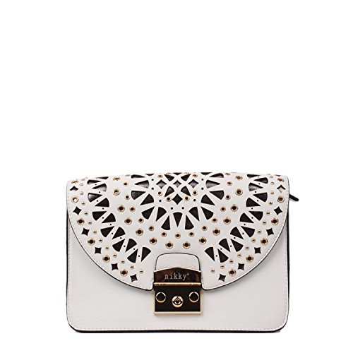 Nikky Women's Mini Structured Laser Cut Design Crossbody Cross Body Bag, White, One Size
