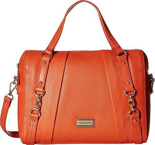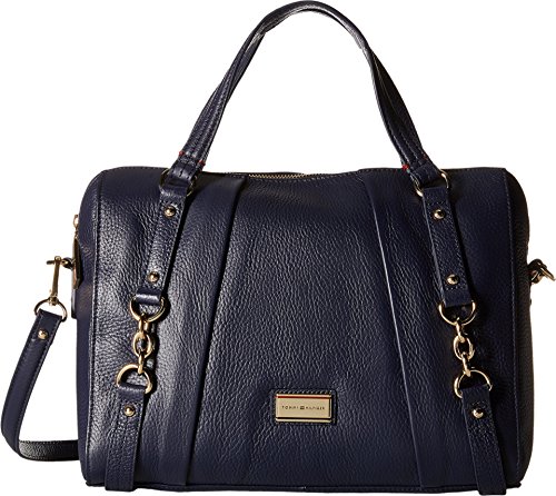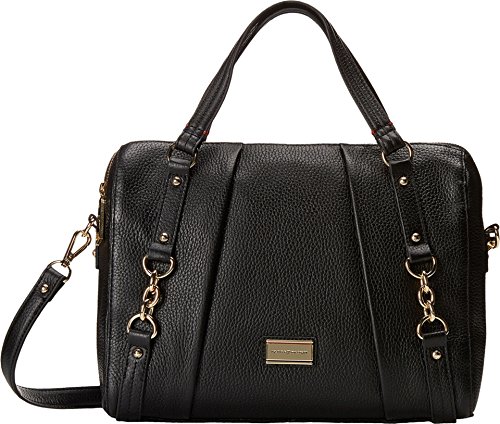 Top zip closure. Dual flat carry handles. Removable and adjustable crossbody strap. Exterior features brand plaque at front, polished hardware accents, and tonal stitching. Flat base. Lined interior flaunts back wall zip pocket and additional slip pocket. Imported