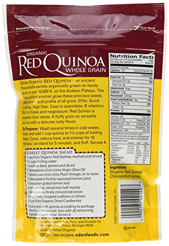 - 16 oz, organic red quinoa, gluten 100% whole grain, vegan, wheat free, gluten free, kosher and pareve