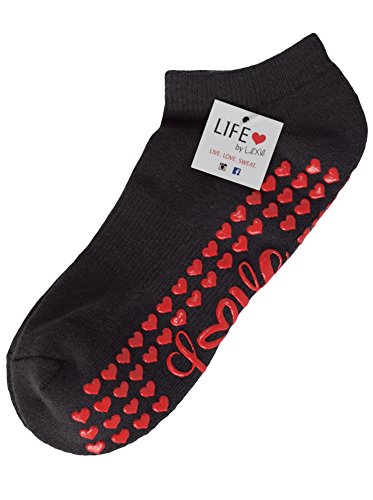 -. Binding : Apparel -. Brand : Life By Lexie -. Color : Charcoal/Red -. Department : womens -. Feature : 85% cotton, 12% polyester, 3% spandex / Super Sticky Grips / Elastic arch support / Padded foot bed for extra comfort / Machine wash. Hang Dry. {The world won't end if you throw these in the dryer but please know they won't last as long if they aren't washed with a little love! Our trick is to hang dry and throw in the dryer for 2 minutes for that soft fresh out of the dryer laundry feel!} -. IsAdultProduct : 0 -. Model : LBLLOVESS -. ProductGroup : Apparel -. ProductTypeName : SOCKSHOSIERY -. Size : One Size Fits All -. Title : Life By Lexie Love Sticky Grip Socks for Barre, Pilates, Yoga