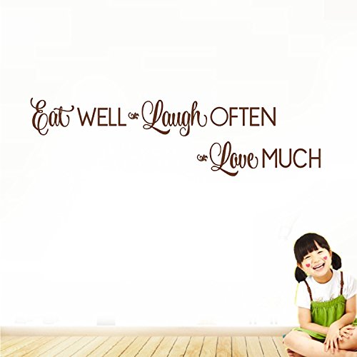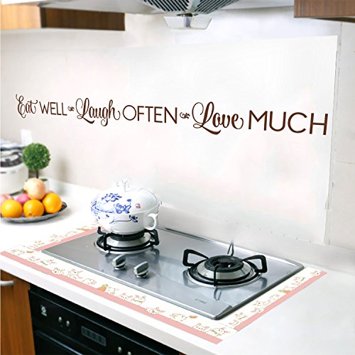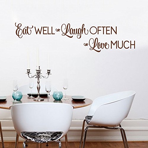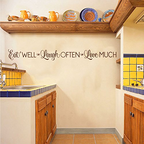 Kitchen Wall Stickers Home Decor, Dining & Cooking Quote Decal Heart Removable Vinyl Art Decoration (Eat Well, Laugh Often, Love Much, Brown)