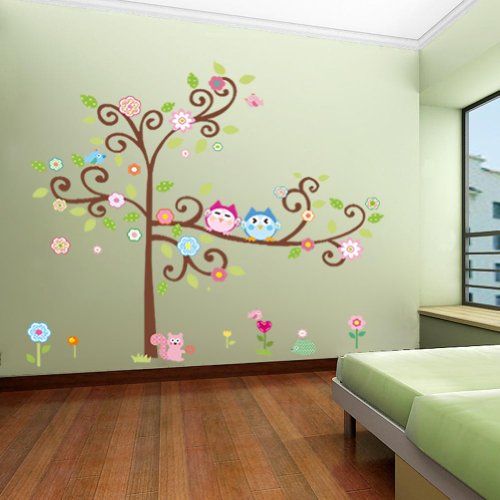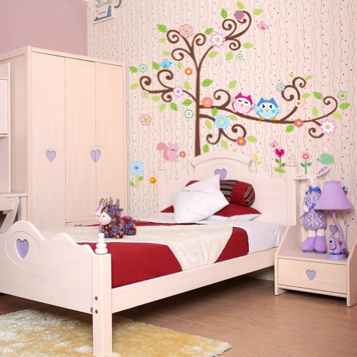 - Title : Colorful Flower And Owls On The Tree Cartoon Wall Decor Sticker, Removable Decals For Kids Room Decoration, For Living Room
