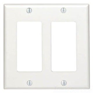 The Leviton 80409-NW is a 2-gang, Decora/GFCI wall plate in white. Leviton Decora designer and Decora Plus wall plates are available in a large variety of colors and styles. Add an elegant touch to your home with Decora wall plates, or go modern with Decora Plus screwless wall plates. They feature a midway size that not only provides greater coverage, but also hide wall surface irregularities.