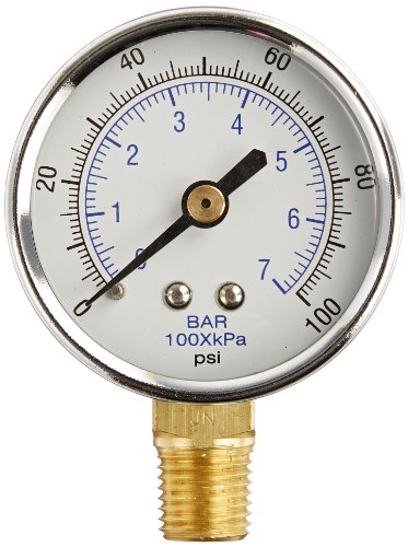 PIC Gauge 101D-204E Dry Filled Utility Bottom Mount Pressure Gauge with Black Steel Case, Chrome Bezel, Plastic Lens, 2" Dial Size, 1/4" Male NPT Connection Size, 0/100 psi Range
