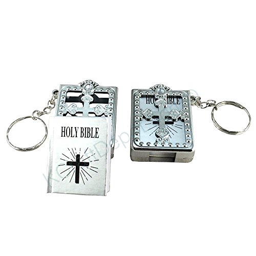 -. Title : 12 Pcs - Silver - Key Chain English Holy Bible Religious Gift Baptism Favors Keychain