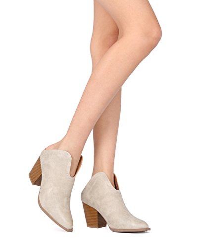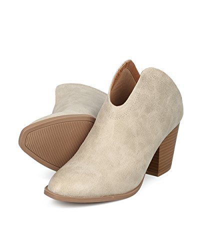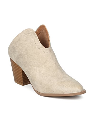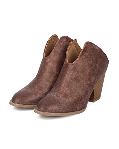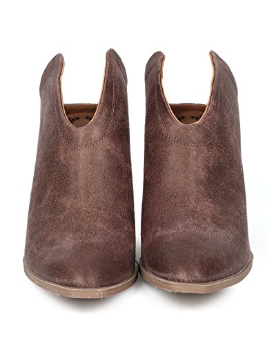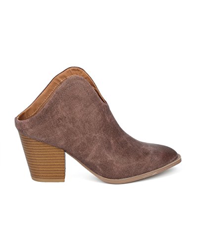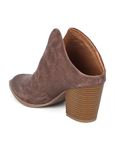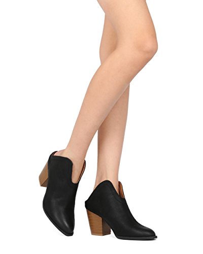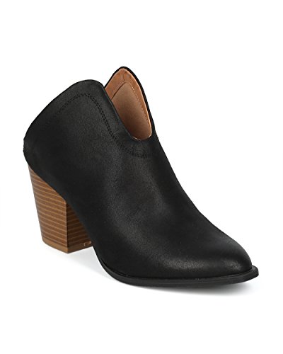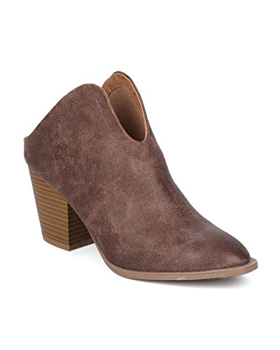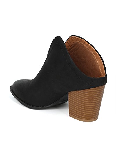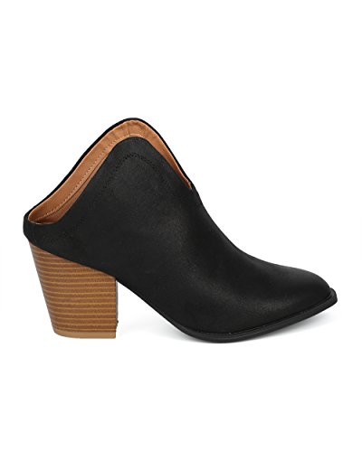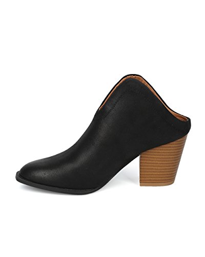 Alrisco Women Leatherette Pointy Toe Plunging Block Heel Bootie Mule - HF73 Qupid Collection