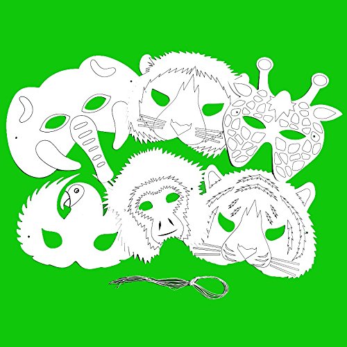 -. Title : 6 Plain Card Jungle Animal Face Masks - Colour in Create Your Own Design