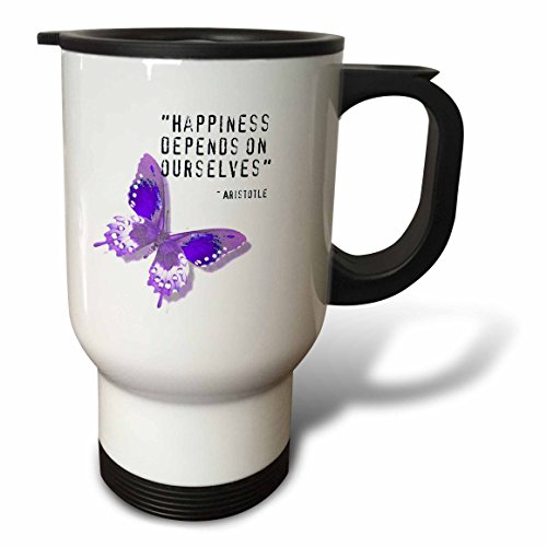 3dRose Happiness Quote Purple Butterfly Inspiration Spirituality Travel Mug, 14-Ounce