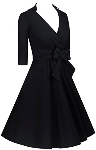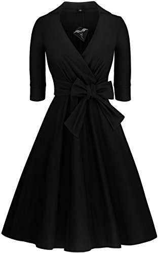 Angerella Women's Retro Deep-V Neck Elegant Half Sleeve Vintage Swing Dress This vintage dress is designed to half sleeve, deep v neck, knee length dresses, quick zipper on the left side, bow belt, stretchy materials