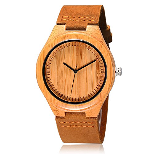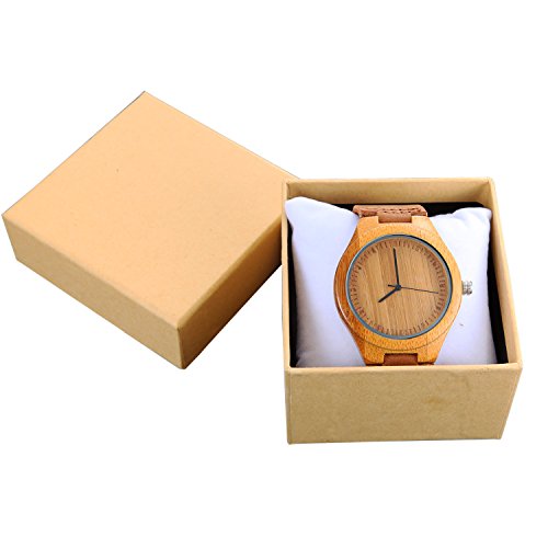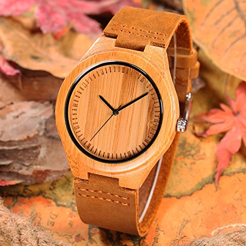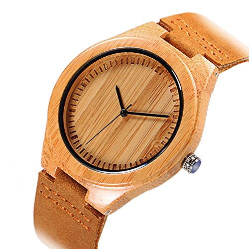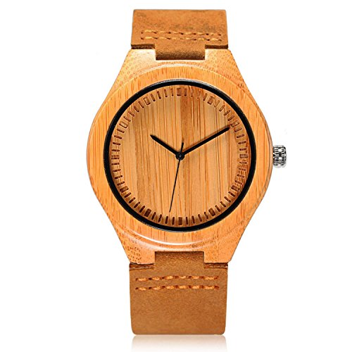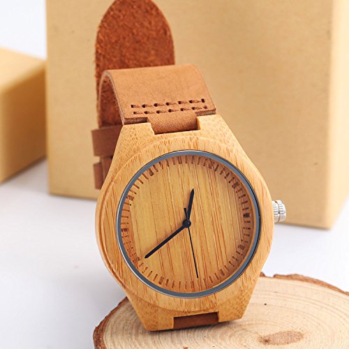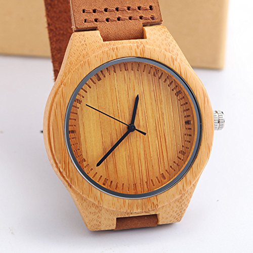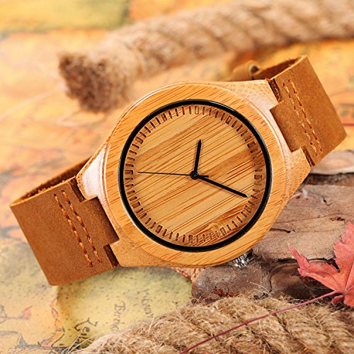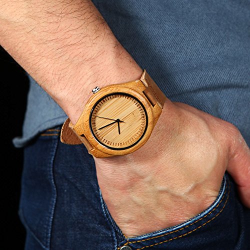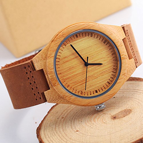 Product Description Quartz movement, Casual watch, Bamboo wood material and cow leather strap.Stainless steel crown, selector button and caseback. No item in a man's wardrobe is used as frequently nor makes as big of a statement as a watch does. Make sure yours combines style and function with the bamboo wooden watch. 0