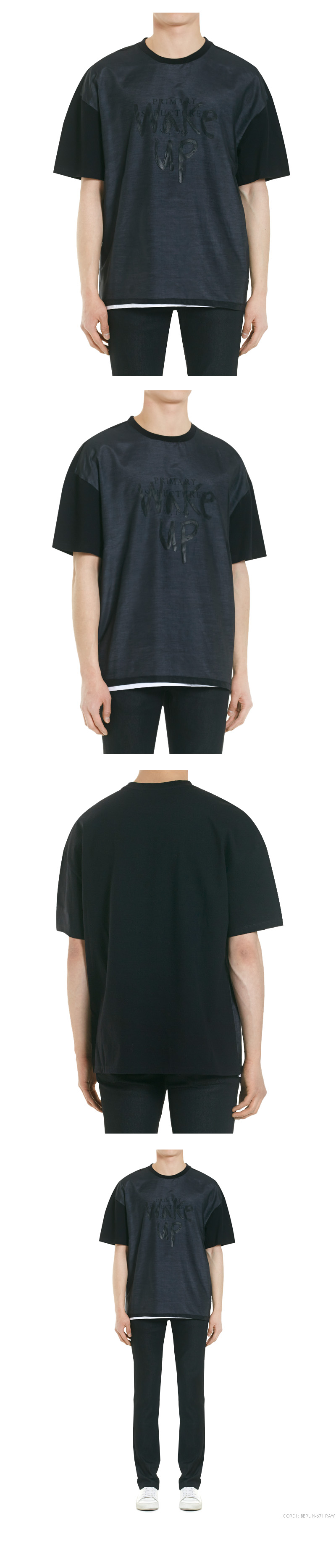 | - 앞판을 두겹으로 작업 - 프린트가 겹쳐보이는 효과 - MAIN. COTTON 100% , SUB. COTTON 70%, SILK30% | |