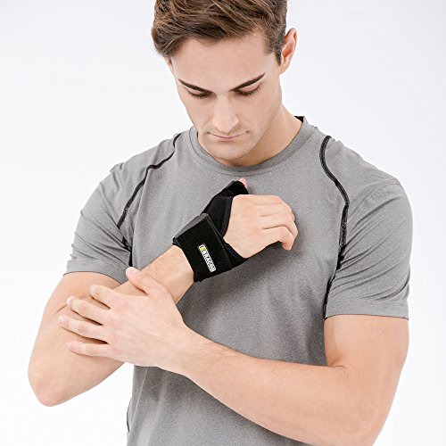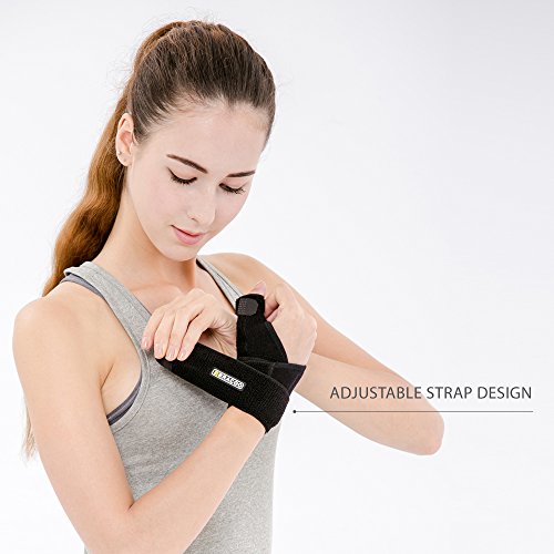 -. Feature : Stabilizes the thumb using concealed sP.R.Ings splints, limiting wrist motion and allowing the joints and supporting muscles time to naturally heal and recover / Ideal for relieving occupational pain from carpal tunnel syndrome (CTS) and repetitive stress injury (RSI), recovery from painful sports-related thumb & wrist strains, or post-surgery and post-cast rehabilitation / Light-weight, discrete design allows normal finger movement and minor flexing at the thumb tip for standard tasks such as typing, driving, and cooking / Quality, breathable neoprene sleeve fits both right and left thumbs, ensuring warmth and boosting blood circulation; tightness can be adjusted easily using 3 Velcro straps / Fits wrist circumferences up to 10"; thumb opening fits thumb circumferences up to 3.4"